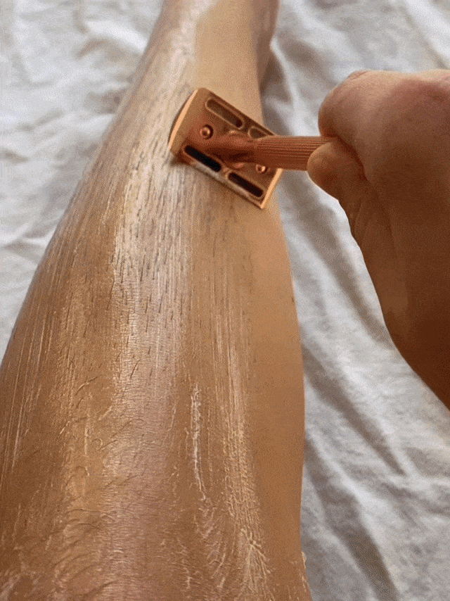 For example, with a 3-blade cartridge razor, if you go over the same area three times, you’re exposing your skin to 15 passes of a blade. In contrast, with the Camelie razor, each pass is with just one sharp, durable blade. The fewer times your skin is exposed to the blade, the less irritation you’ll experience, and the reduced risk of ingrown hairs leads to smoother, healthier skin.